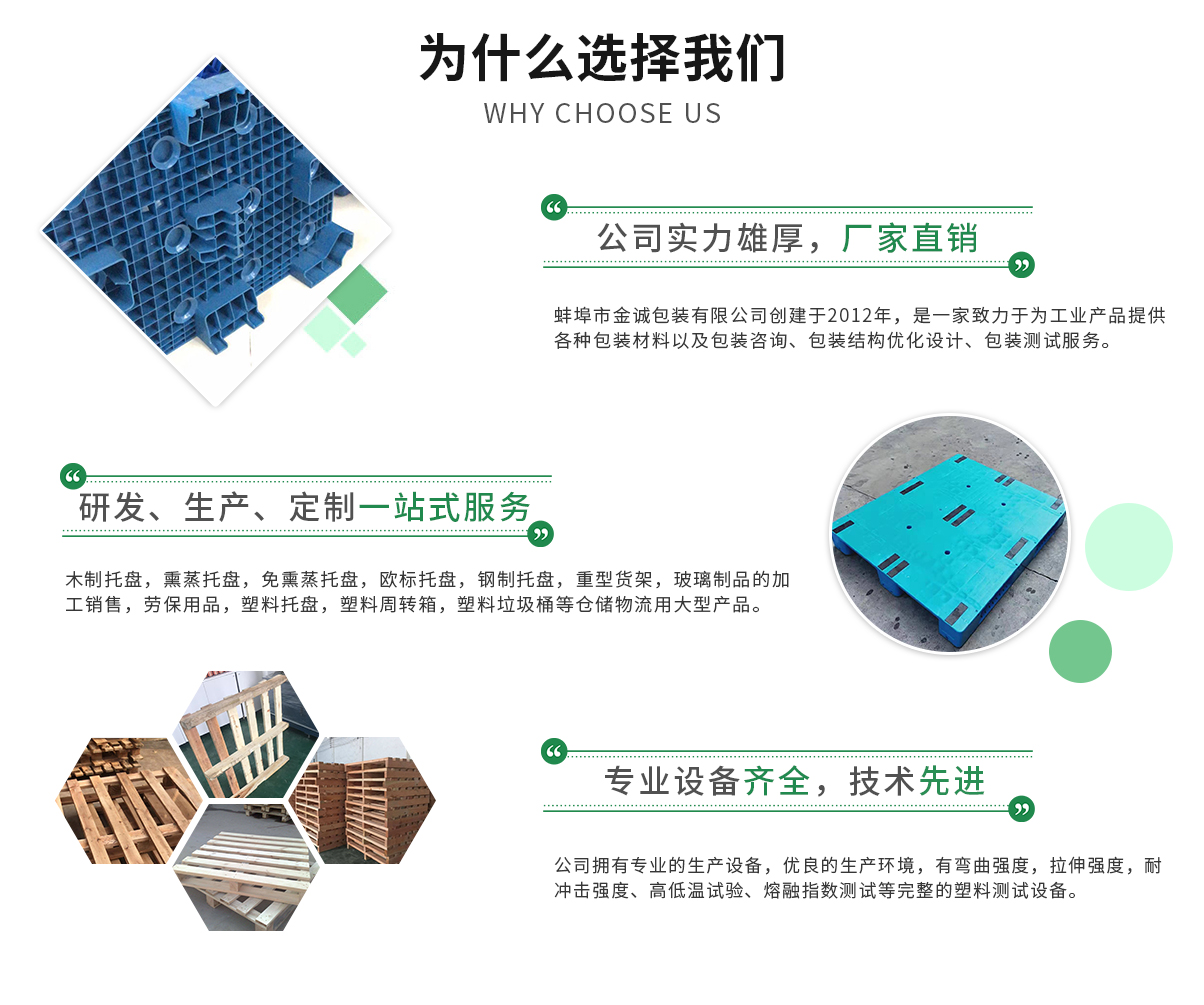 蚌埠市金誠包裝有限公司創(chuàng)建于2012年,是一家致力于為工業(yè)產(chǎn)品提供各種包裝材料以及包裝咨詢、包裝結(jié)構(gòu)優(yōu)化設(shè)計(jì)、包裝測試其中包括木制托盤,熏蒸托盤,免熏蒸托盤,歐標(biāo)托盤,鋼制托盤,重型貨架,玻璃制品的加工銷售,勞保用品...